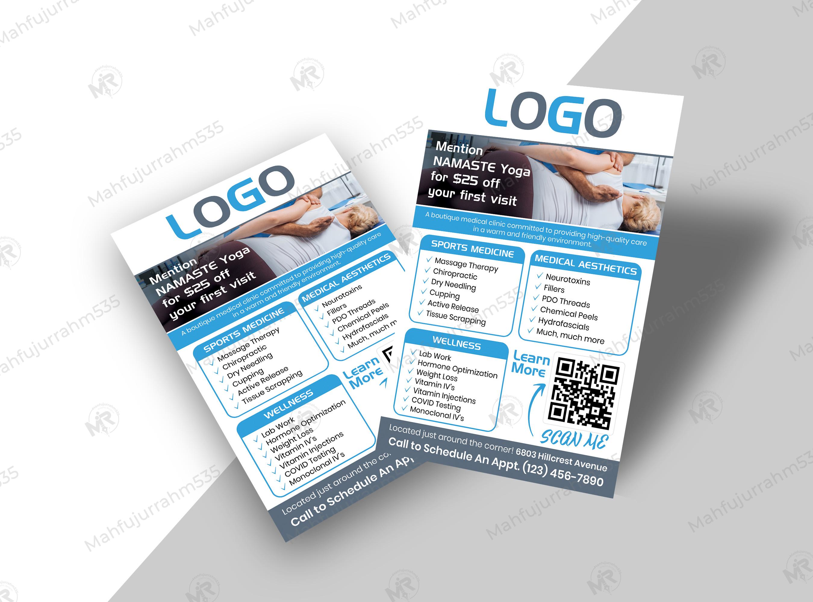 This flyer design was specially created for chiropractic and massage therapy services. This design was created in such a way that any chiropractic and massage therapy service can use it. The correct information for chiropractic and massage therapy services was used in this design. If you like this design, we hope you don't have to change much in this design. And if you want to change something then we will make the changes according to your needs. If you want to take this design, please start a project by clicking on "PROJECT START" from the right side of the design above. We will first edit the design according to your company information, and then send you the final file.