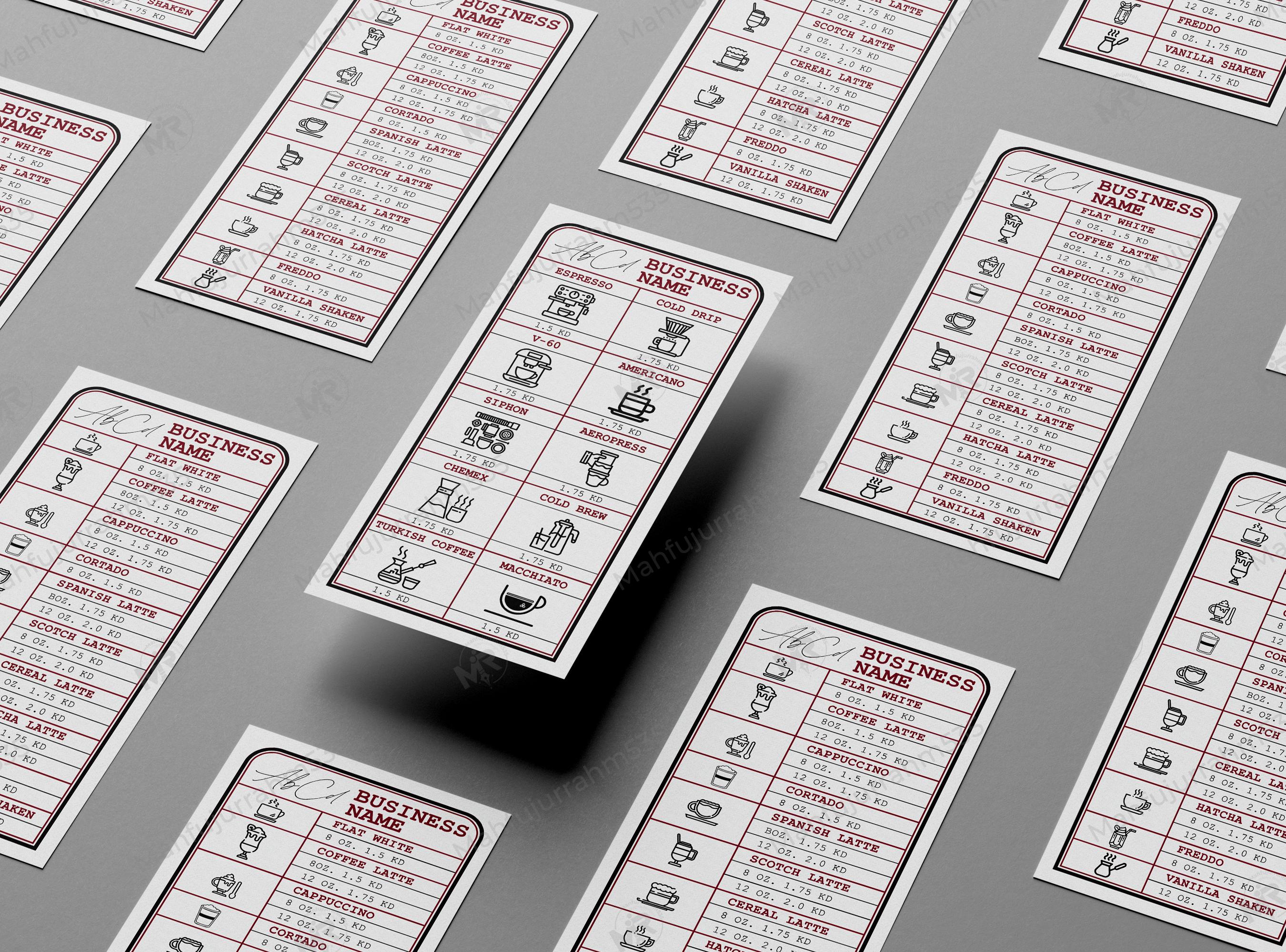 Maximize customer ordering efficiency with this highly organized Coffee and Roastery Menu Design. This template is essential for Specialty Coffee Shops, Cafés, and Roasteries that offer a diverse and complex beverage program. The design is meticulously structured using verified coffee industry information, ensuring clear categorization, pricing by size, and easy readability. This makes it the perfect, ready-to-use asset for any Coffee and Roastery company, requiring minimal customization to implement immediately.