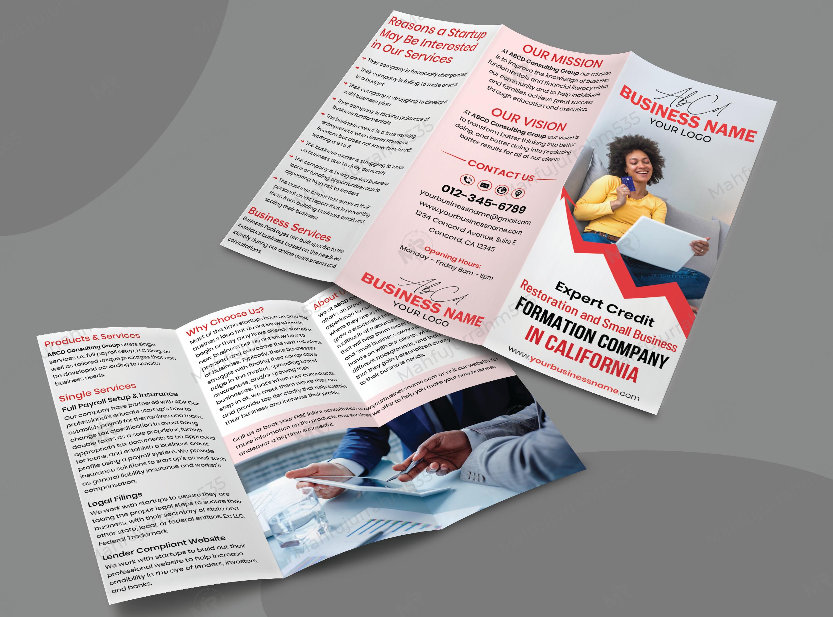 This brochure design was specially created for credit repair services. This design was created in such a way that it can be used by any credit repair service. The credit repair services's correct information was used in this design. If you like this design, we hope you don't have to change much in this design. And if you want to change something then we will make the changes according to your needs. If you want to take this design, please start a project by clicking on "PROJECT START" from the right side of the design above. We will first edit the design according to your company information, and then send you the final file.