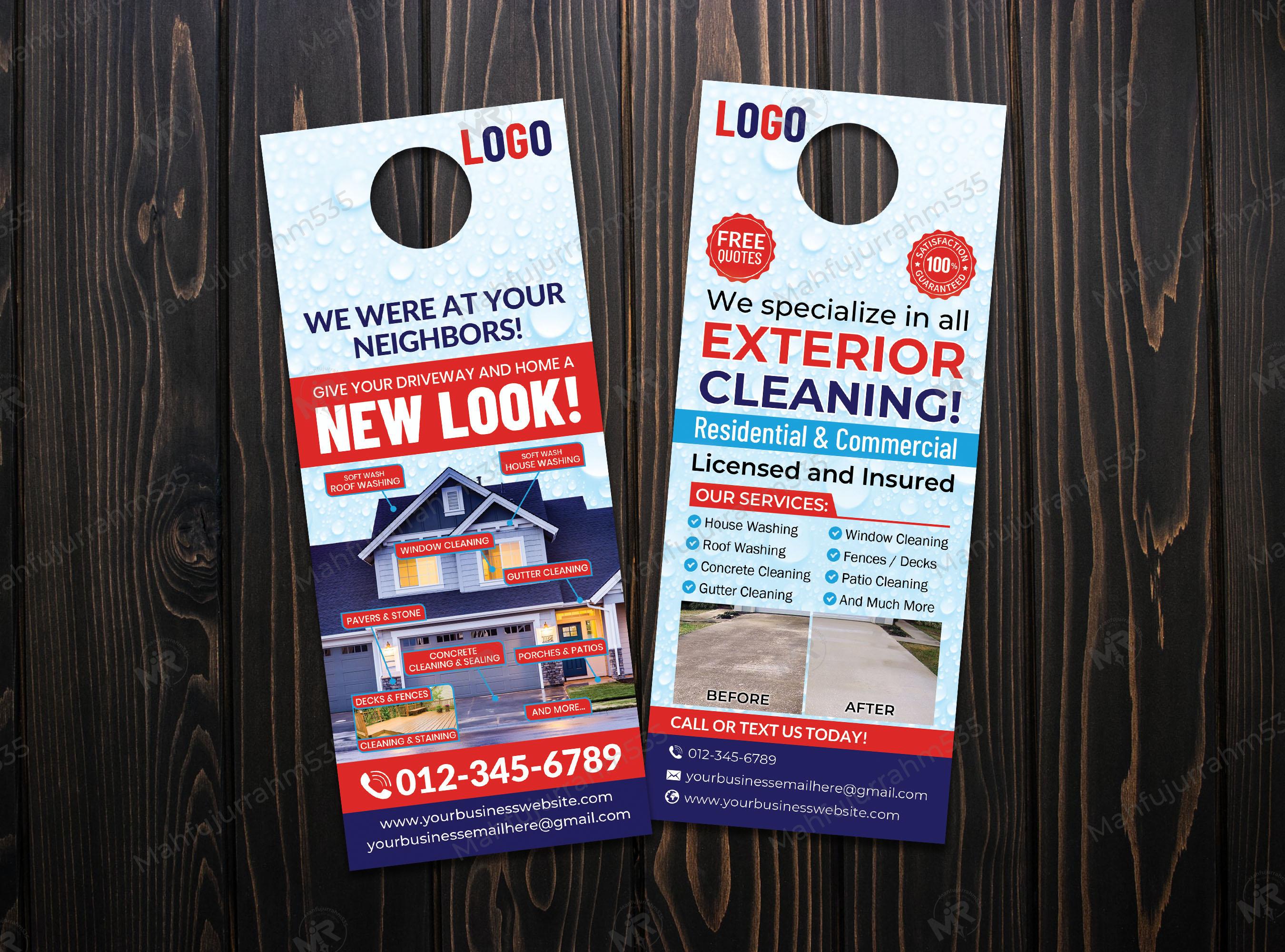 This Door Hanger Design is specially created for exterior cleaning services/companies. This design is created in such a way that any exterior cleaning services/companies can use it. This design uses the correct information from exterior cleaning services/companies. If you like this design, we hope you don't have to change much in this design. And if you want to change something then we will make the changes according to your needs. If you want to take this design, please start a project by clicking on "PROJECT START" from the right side of the design above. We will first edit the design according to your company information, and then send you the final file.