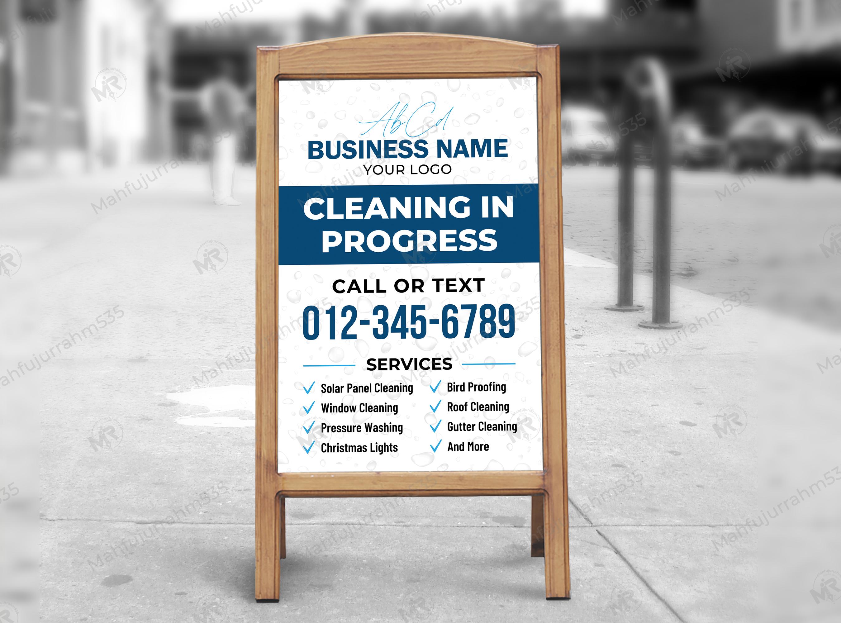 In the competitive world of home and commercial maintenance, grabbing the attention of passersby is essential. Our Cleaning Services Sidewalk Sign Design is specifically crafted to help your business stand out on the street. Whether you specialize in window cleaning, pressure washing, or solar panel maintenance, this A-frame sandwich board design offers a clean, modern, and highly readable layout that guarantees professional appeal.