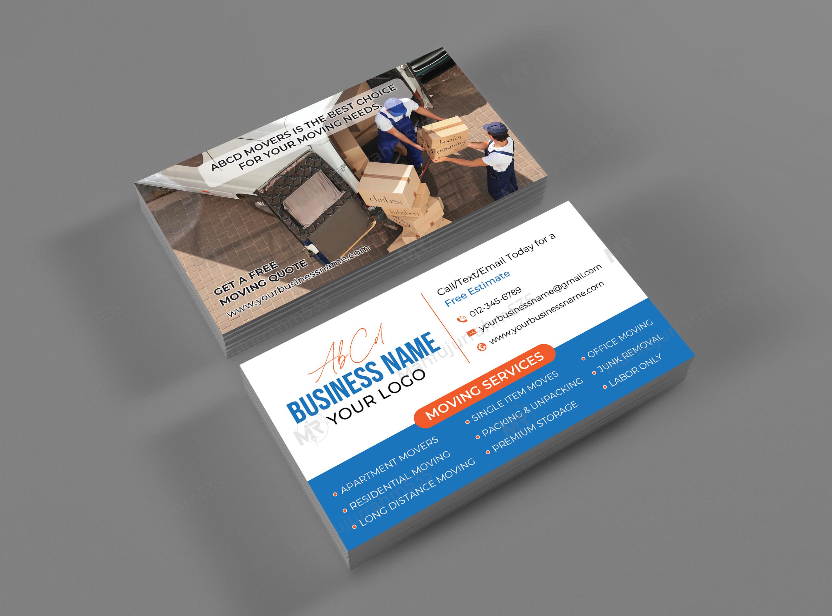 This business card design was specially created for Moving services/companies. This design is created in such a way that any Moving services/companies can use it. This design uses the correct information from moving services/companies. If you like this design, we hope you don't have to change much in this design. And if you want to change something then we will make the changes according to your needs. If you want to take this design, please start a project by clicking on "PROJECT START" from the right side of the design above. We will first edit the design according to your company information, and then send you the final file.