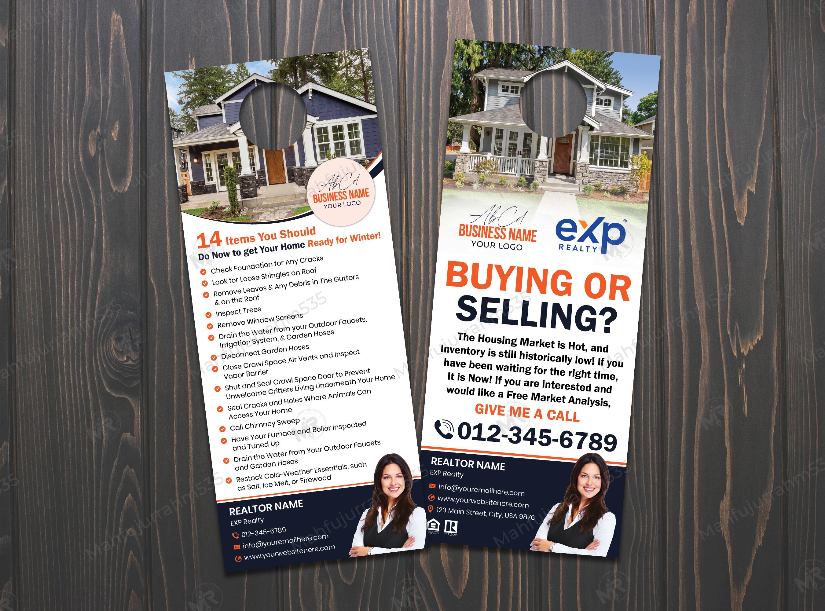 Capitalize on seasonal home maintenance and the hot housing market with this comprehensive Real Estate Door Hanger Design. This two-sided direct marketing template is a highly effective tool for Realtors to engage homeowners on two key fronts: property readiness and selling potential. The design is meticulously crafted using verified real estate industry information, combining practical seasonal tips with current market insights. This makes it the perfect, ready-to-use asset for any real estate professional, requiring minimal customization to deploy immediately.
