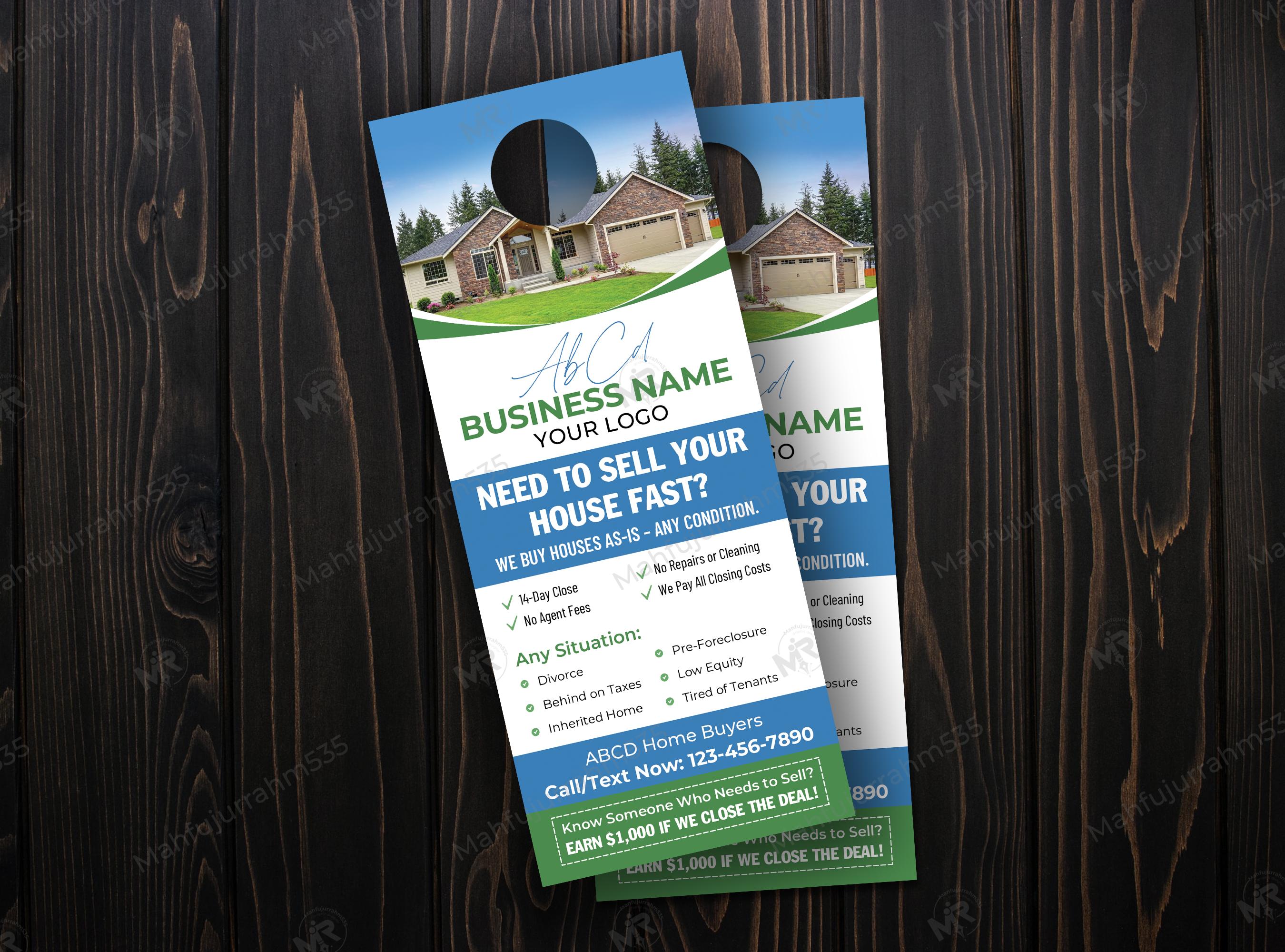 Looking for a powerful way to find motivated sellers in your target neighborhood? Our "We Buy Houses" door hanger template is specifically engineered for real estate investors and home buyers who want to make a bold impression. The design features a clean, professional layout that builds immediate trust while highlighting your most attractive offers, such as fast closings and cash payments.