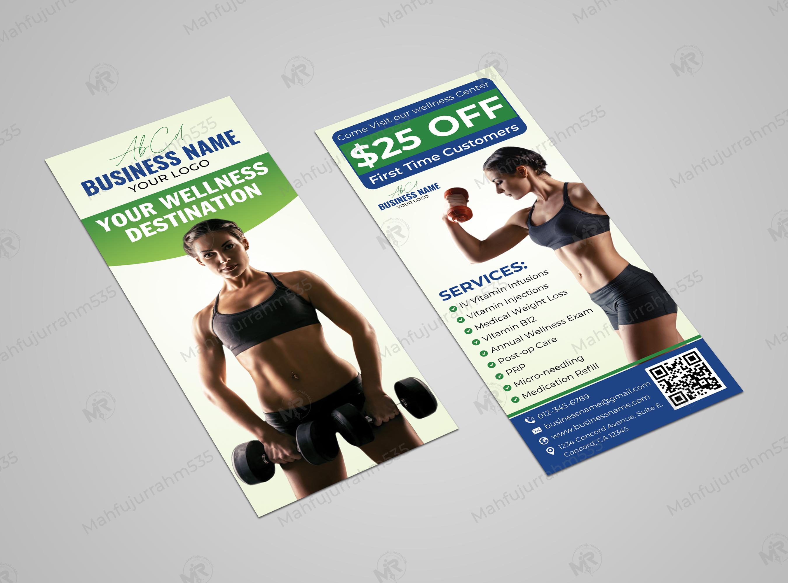 Are you looking to elevate your healthcare or wellness center's marketing? This premium Wellness Center Rack Card is specifically designed for medical professionals and health clinics. Featuring a clean, modern aesthetic with high-quality imagery, it effectively showcases core services like Vitamin Infusions, Medical Weight Loss, and Annual Wellness Exams.